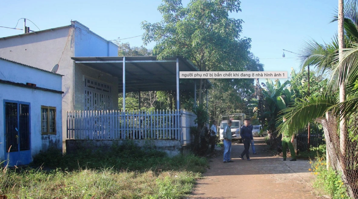 Nạn nhân là bà Trần Thị Xuân Trang (53 tuổi), ngụ tại phường An Lộc, tỉnh Đồng Nai. Theo thông tin ban đầu, khoảng 22h ngày 6/12, bà Trang đang ở nhà cùng gia đình tại khu phố Phú Lạc, phường An Lộc. Bất ngờ, gia đình giật mình bởi tiếng động lớn khi cánh cửa chính của ngôi nhà bị bắn vỡ từ phía ngoài đường.
