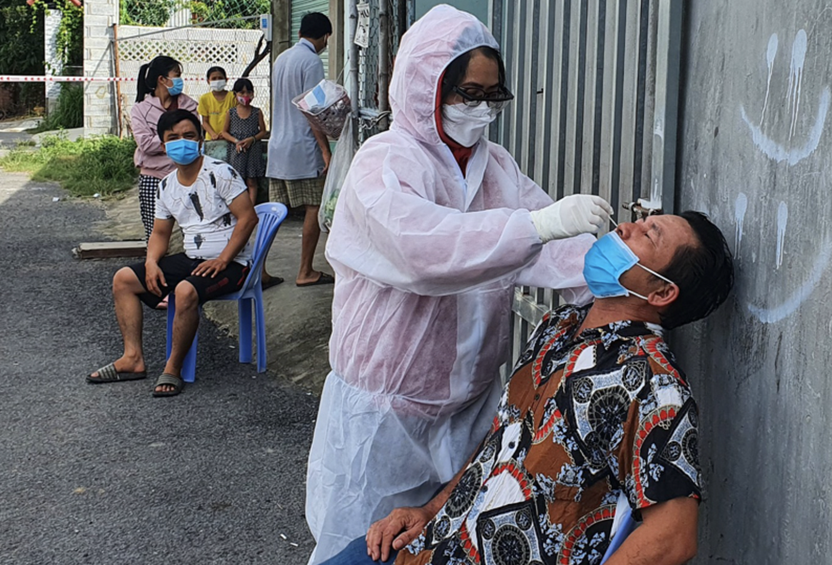 Nhân viên y tế tỉnh Đồng Nai lấy mẫu xét nghiệm COVID-19 cho người dân phường Trảng Dài.