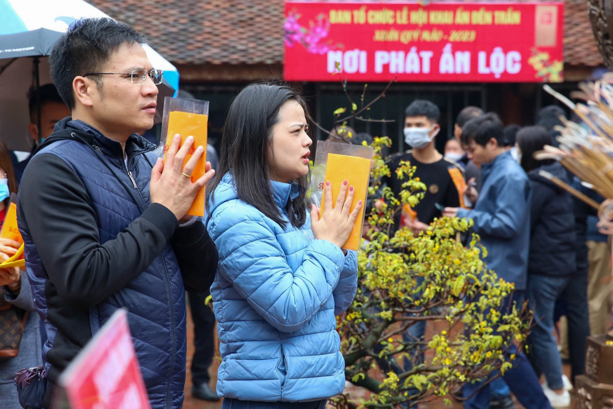 "Chúng tôi phải chờ đợi khoảng 30 phút để cầm trên tay những lá ấn. Thời tiết mưa lạnh nhưng tôi vẫn nhất tâm chờ đến khi nào nhận được ấn mới ra về", anh Trần Việt Nam (Hà Nam) nói.