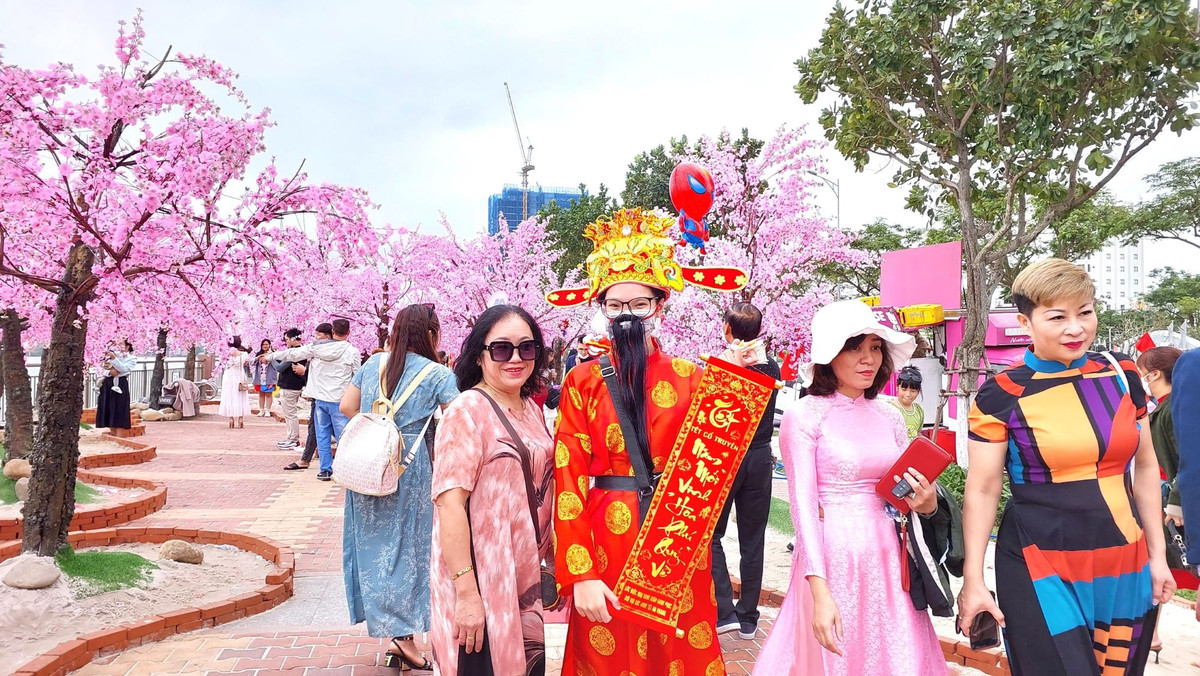 Ghi nhận của PV VTC News, ngày 30 Tết (21/1 dương lịch), tại đường hoa xuân dọc sông Hàn, trải dài hơn 300m (từ Công viên APEC đến khu vực gần Trung tâm Hành chính thành phố), người dân, du khách du xuân, check-in rất đông.