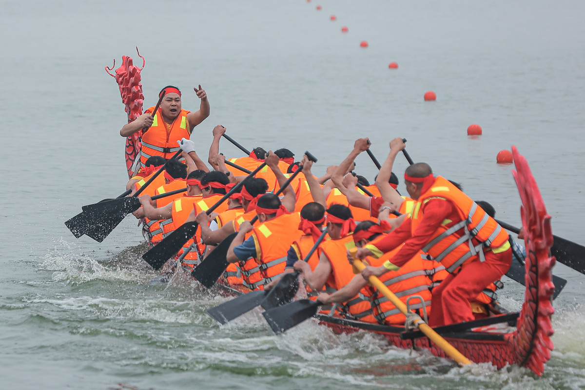 Tiếng trống giục giã, tiếng hò vang vọng khắp mặt nước, hòa quyện với những nhịp chèo đều tay, mạnh mẽ của các vận động viên tạo nên bầu không khí lễ hội sôi động, náo nhiệt.