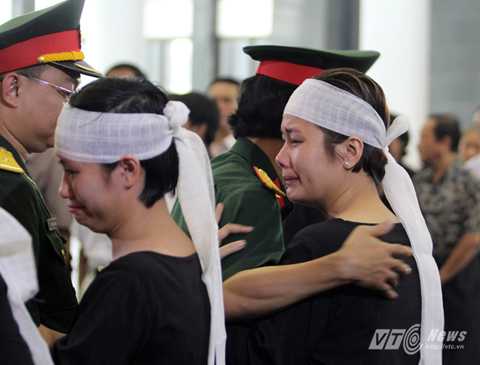 | Người thân của nhạc sĩ An Thuyên khóc nấc khi đứng trước di ảnh nhạc sĩ. |