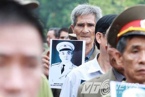 | Ông Võ Hồng Nam (áo xanh), con trai của Đại tướng Võ Nguyên Giáp cảm ơn tấm lòng của đông đảo người dân (Ảnh: Minh Chiến) |