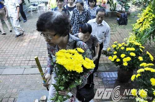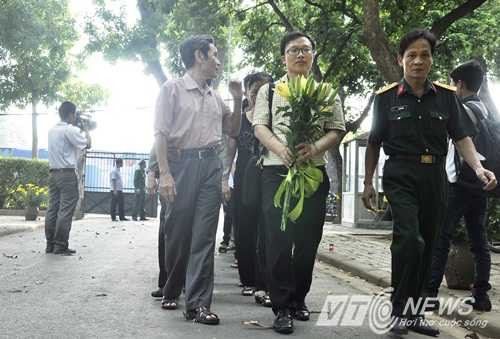 Từ sáng sớm, rất đông người dân đã đến số nhà 30 Hoàng Diệu với những bó hoa tươi thắm trên tay để dâng lên Đại tướng Võ Nguyên Giáp. Từng dòng người lại lặng lẽ xếp hàng trước cổng nhà Đại tướng để chờ được vào bên trong dâng hương.