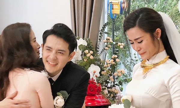 Trong lễ cưới, gia đình Ông Cao Thắng dành nhiều lời khen cho cô con dâu mới.