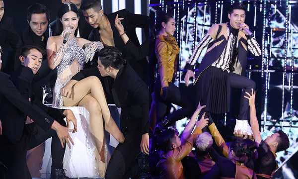 Mặc dù gặp sự cố về giày nhưng điều đó không khiến Đông Nhi nao núng mà còn biểu diễn bốc lửa, cuồng nhiệt hơn với đôi chân trần.