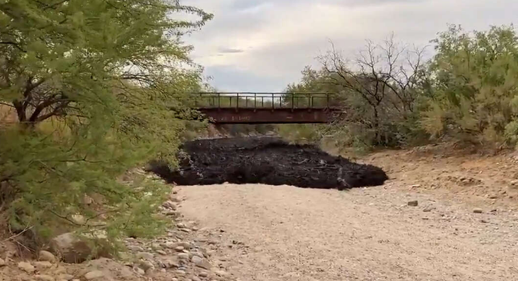 Các quan chức hạt Pima, bang Arizona đăng tải đoạn video ghi lại cảnh dòng nước đen kịt chảy tràn qua một kênh thoát nước sau một cơn bão nhỏ.