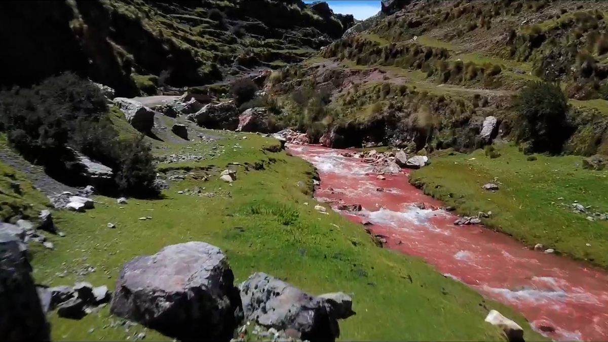 Sông Palquella Pucamayu ở Peru có nước đỏ như máu kéo dài 5km, chảy qua các thung lũng đá ở dãy Vilcanota.