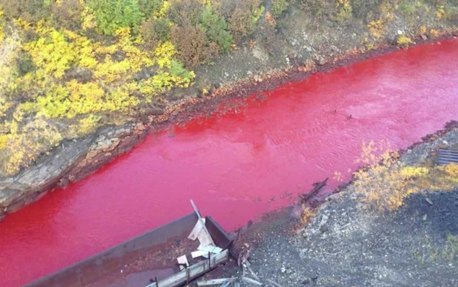 Video: Dòng sông ở Nga chuyển màu đỏ như máu