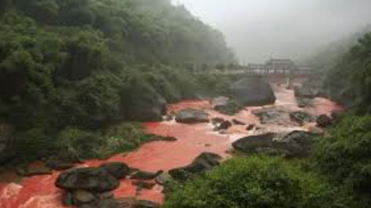Dòng sông ở Trung Quốc chuyển màu đỏ như máu sau cơn mưa
