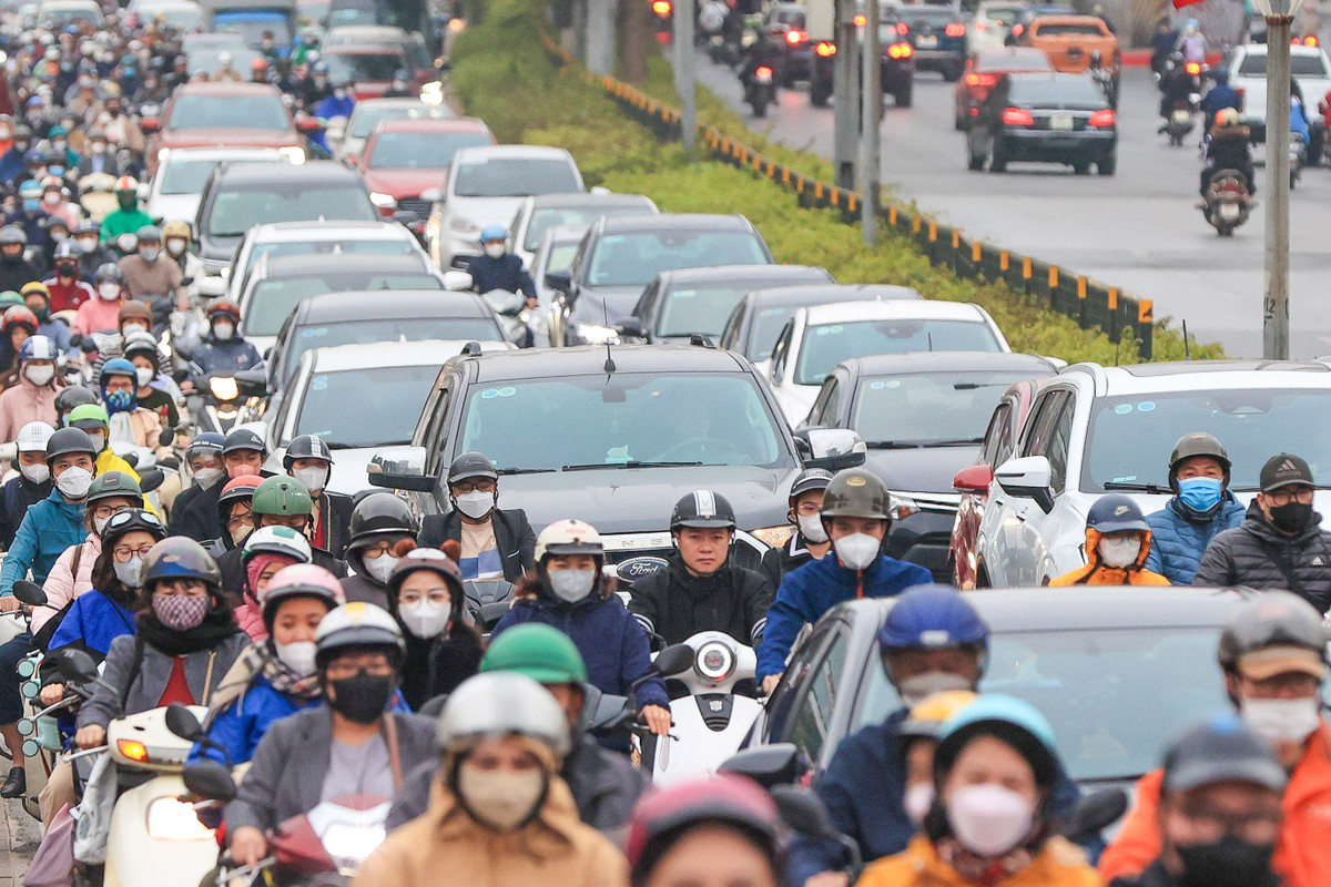 Sáng 15/2 (mùng 6 Tết) là ngày đầu tiên cán bộ, công nhân viên chức đi làm sau kỳ nghỉ Tết kéo dài 1 tuần. Theo ghi nhận của PV, tại các tuyến đường trung tâm của Hà Nội như Nguyễn Trãi, Nguyễn Xiển, Cầu Giấy, Hoàng Minh Giám, Khuất Duy Tiến... mật độ phương tiện tăng cao.