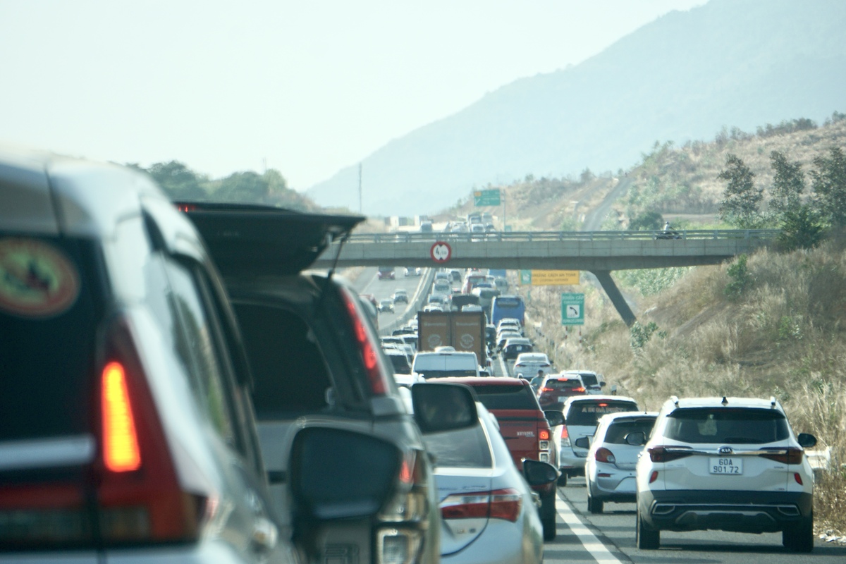 Xe ô tô "bò" trên cao tốc Phan Thiết - Dầu Giây chiều mùng 5 Tết.