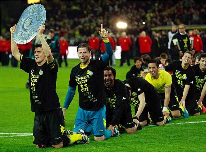 (VTC News)- Bundesliga 2011-12 đã tìm được nhà vô địch sau loạt trận tối thứ 7 vừa qua. Hạ gục đội hạng 4 Moenchengladbach thuyết phục với tỉ số 2-0, thầy trò HLV Jürgen Klopp chính thức bảo vệ thành công ngôi vương sớm 2 vòng đấu. Đây cũng là chiếc cúp bạc thứ 8 trong lịch sử đội bóng vùng Ruhr.