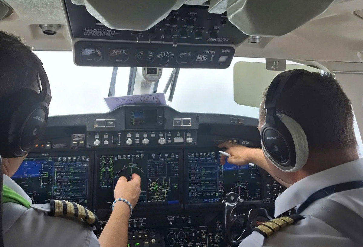 Các thành viên của Đội bay hiệu chuẩn, trên tàu bay King Air 350.