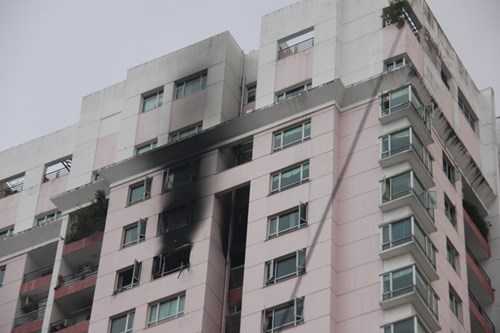 Rất may đám cháy được khống chế dù đã thiêu rụi nhiều tài sản trong căn hộ C6 và làm cháy sém một số căn hộ khác.