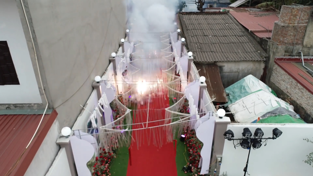 Clip: Đốt pháo đỏ đường trong đám cưới ở Hà Nội