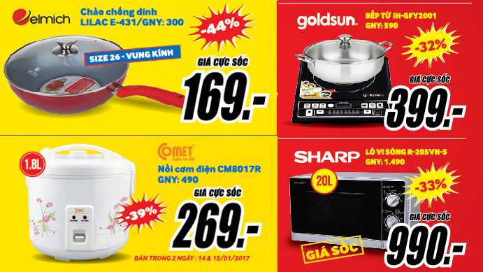 15 ngày cao điểm tết cũng là cơ hội để sắm ngay các sản phẩm công nghệ mới với mức giá hấp dẫn: iPhone 7 32G giá chỉ 16.988.000đ lì xì 200.000đ và tặng gậy chụp ảnh, Samsung Galaxy J7 Prime giá sau khuyến mại chỉ 5.688.000đ, Oppo F1S giá chỉ 5.688.000đ lì xì tiền mặt 300.000đ, laptop Lenovo IdeaPad 110-14IBR giảm 22% giá ước tính 4.700.000đ…