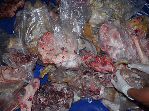 Qua đó, lực lượng chức năng phát hiện toàn bộ số xương, thịt, nội tạng bò đã biến đổi về mầu sắc, bốc mùi hôi thối và có dấu hiệu bị nhiễm khuẩn.