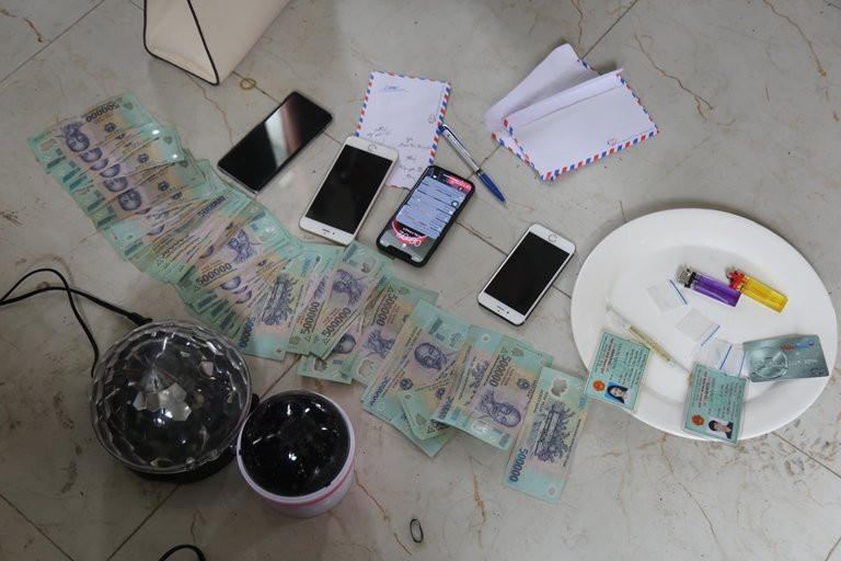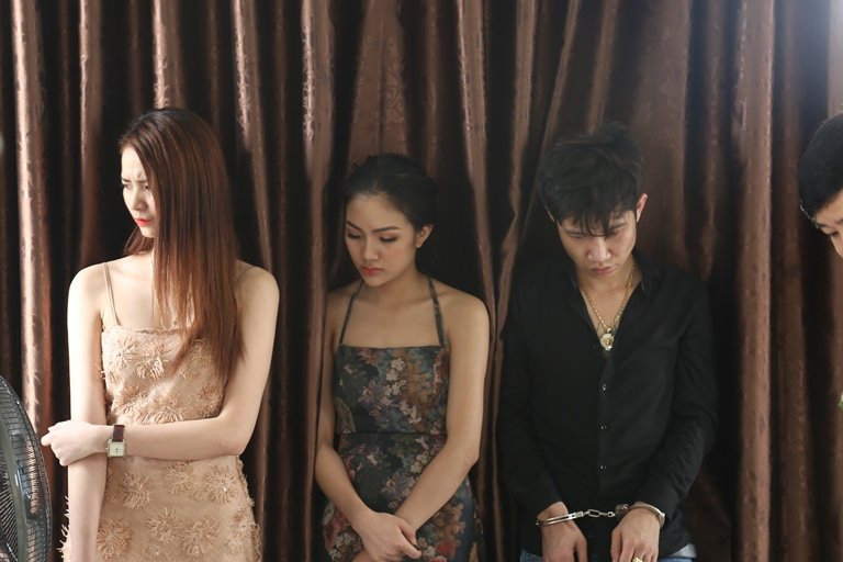 Tại phòng 405, công an phát hiện 7 đối tượng gồm 3 nữ và 4 nam có hành vi sử dụng trái phép chất ma túy, gồm: Nguyễn Hữu Bảo (SN 1994); Ngô Đình La và Nguyễn Phương Long (cùng SN 1991, ở xã Đạo Đức, huyện Bình Xuyên); Nguyễn Trung Nhất (SN 1995); Phạm Thị Thúy Quỳnh (SN 1998); Phùng Thị Ngọc Hiền (SN 1996) và Lý Thị Thu Thảo (SN 1997, đều trú tại tỉnh Phú Thọ).