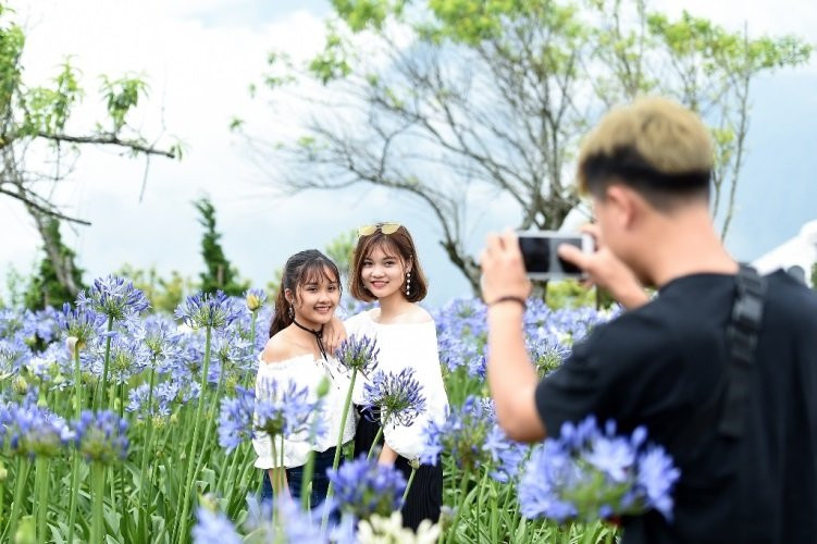 Còn đây là vườn thanh anh, tím biếc trong gió núi, đẹp kiêu sang. Rất nhiều cặp đôi chọn phông nền lãng mạn này để đánh dấu một mùa hè đặc biệt.