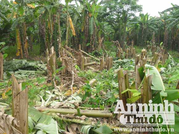 Nhóm côn đồ đốn hạ hàng trăm gốc chuối trị giá khoảng 50 triệu đồng.