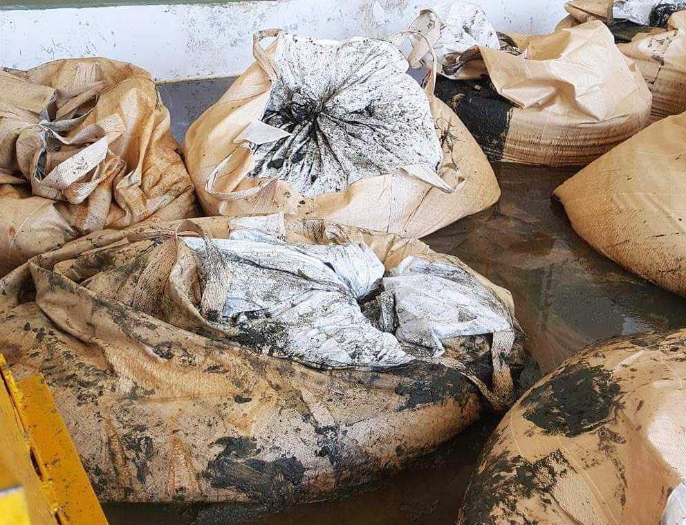 Bùn bánh được đóng gói sơ sài, vứt ngổn ngang ở nhà máy xử lý nước thải Formosa.