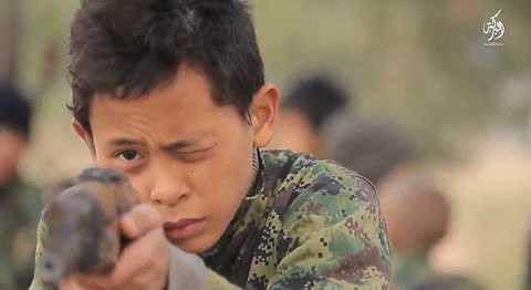 Tiếp đó là hình ảnh những đứa trẻ đến từ Indonesia, Malaysia và Philippines xuất hiện với những khẩu súng trường Kalashnikov dưới sự giám sát của các cựu binh.