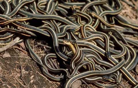 Loài rắn red-sided gater được cho là vô hại đối với con người. Hàng năm chúng tập trung về khu vực này để thực hiện hoạt động giao phối kỳ lạ khi hàng nghìn con rắn đực “tranh nhau” giao phối với một con rắn cái duy nhất.