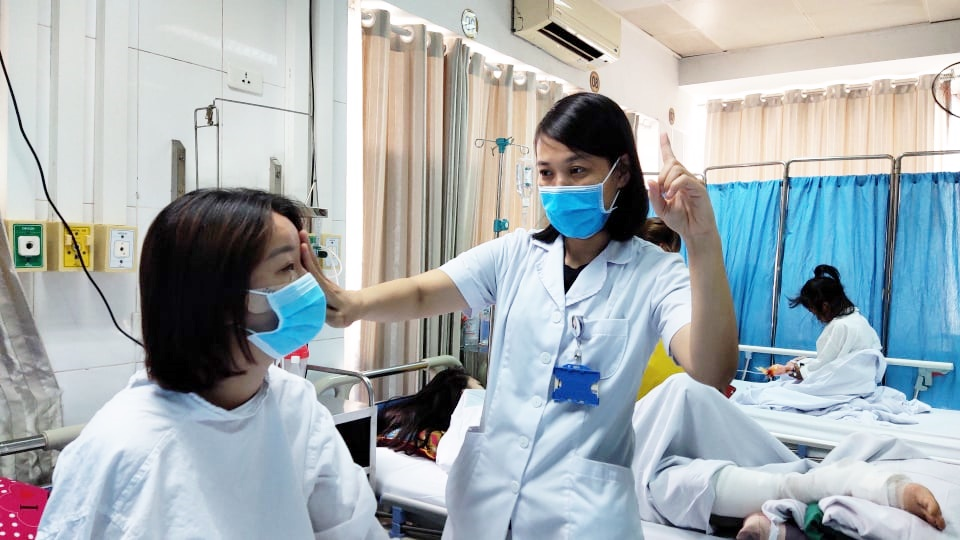 Cùng lúc, các chuyên gia Bệnh viện Hữu nghị Việt Đức liên hệ với bác sĩ tại Bệnh viện Mắt Trung ương phối hợp khám mắt và tiêm thuốc giải hậu nhãn cầu.