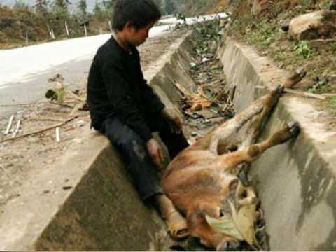 | Bò chết rét tại Lạng Sơn. Ảnh: Facebook |