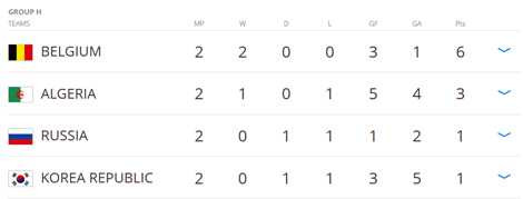 Trước khi lượt trận cuối diễn ra ngoài Bỉ đã chắc chắn giành vé đi tiếp thì tấm vé còn lại chia đều cơ hội cho cả Nga, Hàn Quốc, Algeria, trong đó Nga là đội sáng cửa nhất.