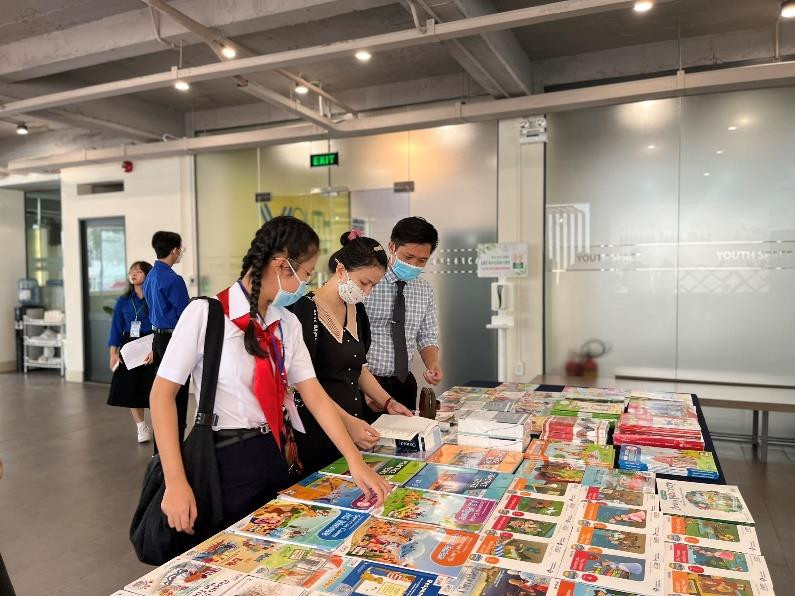 Các thí sinh và phụ huynh được giới thiệu các ấn phẩm bổ ích để nâng cao khả năng sử dụng tiếng Anh.