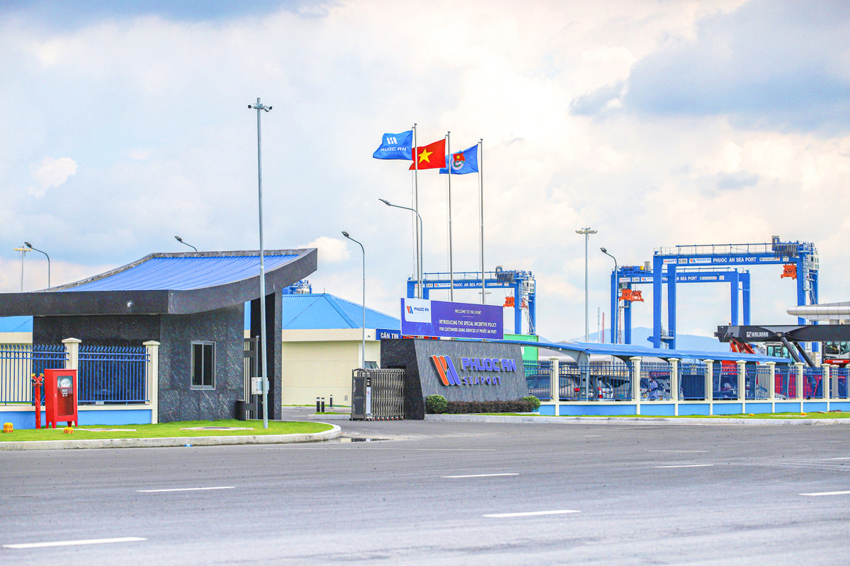 Theo quan sát, trục đường chính kết nối vào cảng Phước An dài 6km với 4 làn đường, tổng mức đầu tư 1.000 tỷ đồng đã hoàn thiện thi công và đưa vào khai thác.