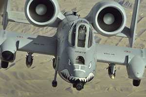 Máy bay cường kích Fairchild A-10 có người lái được trang bị hệ thống chỉ thị mục tiêu bằng laser, pháo 30 mm, tên lửa 70 mm mang hệ thống dẫn đường bằng laser, bom không quân tích hợp hệ thống dẫn đường GPS có khối lượng 113 kg và tên lửa có điều khiển AGM-56E Maverick.