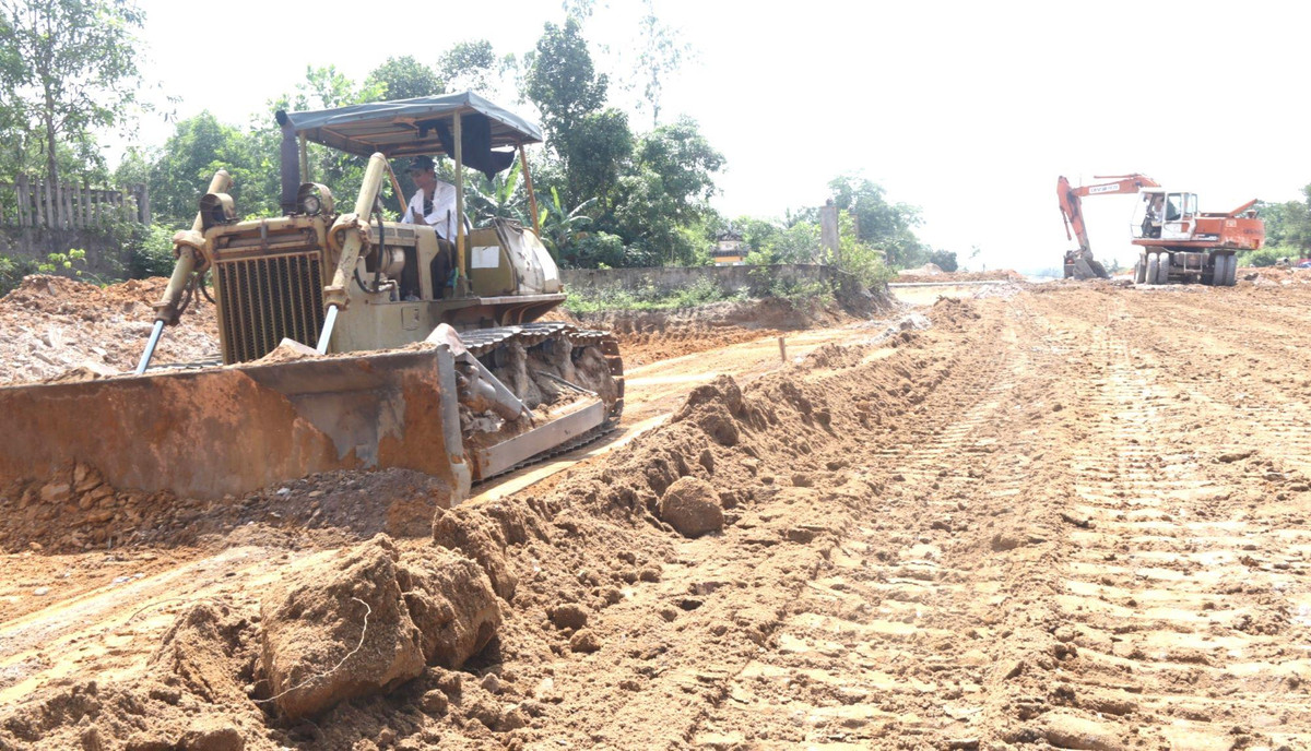 Nhà thầu Cienco 1 thi công hạng mục san lấp mặt đường tại dự án.
