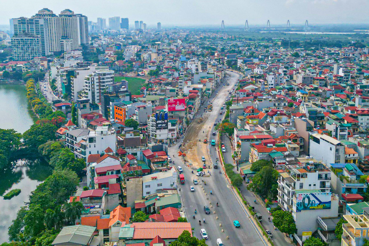 Đến nay, trên toàn tuyến từ khách sạn Thắng Lợi đến nút giao cầu Nhật Tân, nhà thầu đã thi công xong toàn bộ tường chắn đê bê tông cốt thép, tường chắn giao thông bên trái tuyến, thảm bê tông nhựa đường dân sinh hai bên.