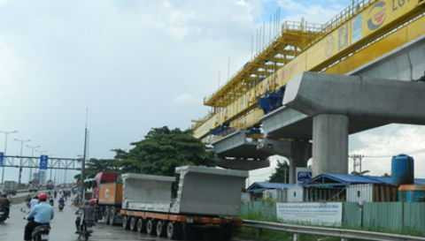 | Đốt dầm chữ U được đúc sẵn đưa về công trường thi công gói thầu số 2 tuyến metro Bến Thành - Suối Tiên để lắp ghép. Ảnh: Huy Thịnh |