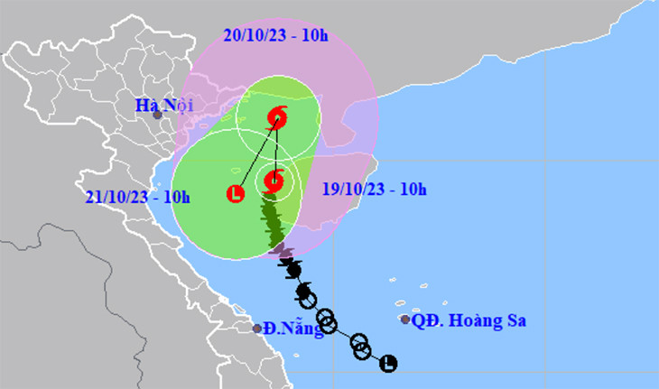 Đường đi của bão số 5 lúc 10h ngày 19/10.