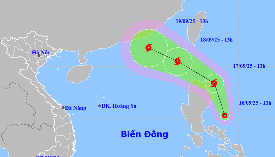Theo Trung tâm Dự báo khí tượng thuỷ văn quốc gia, chiều 16/9, vùng áp thấp ở vùng biển phía Đông đảo Luzon (Philippines) mạnh lên thành áp thấp nhiệt đới.