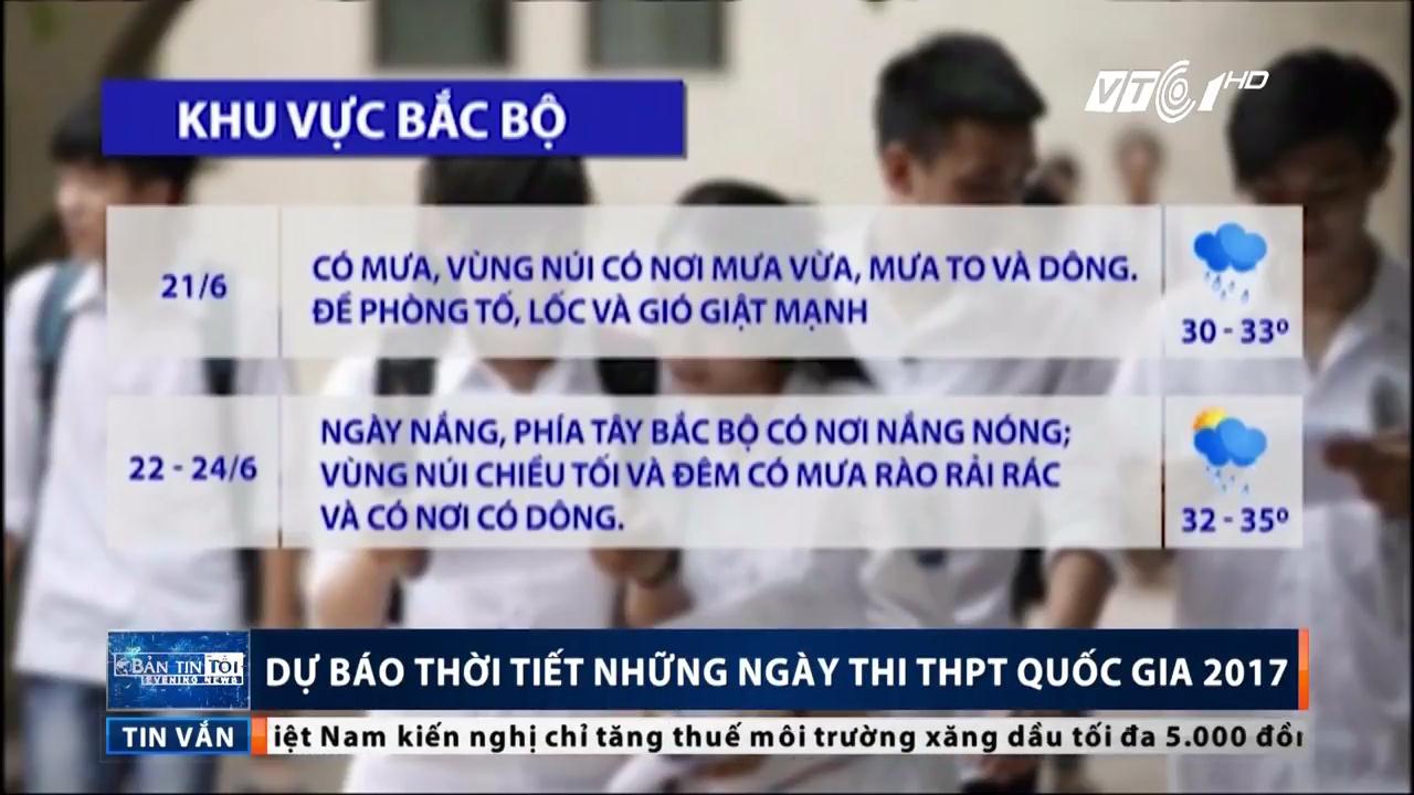 21/06/2017 06:49:00 +07:00Theo Trung tâm Dự báo Khí tượng Thủy văn Trung ương, thời tiết trên cả nước các ngày diễn ra kỳ thi THPT Quốc gia năm nay khá mát mẻ, có lúc có mưa.