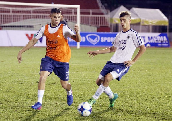 Các cầu thủ U20 Argentina trong một buổi tập trên sân Thống Nhất.