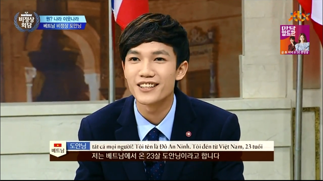 Mới đây, chàng sinh viên Đỗ An Ninh (23 tuổi) trở thành khách mời của chương trình truyền hình Abnormal Summit (tạm dịch: Hội nghị lạ đời) do đài JTBC, Hàn Quốc thực hiện.