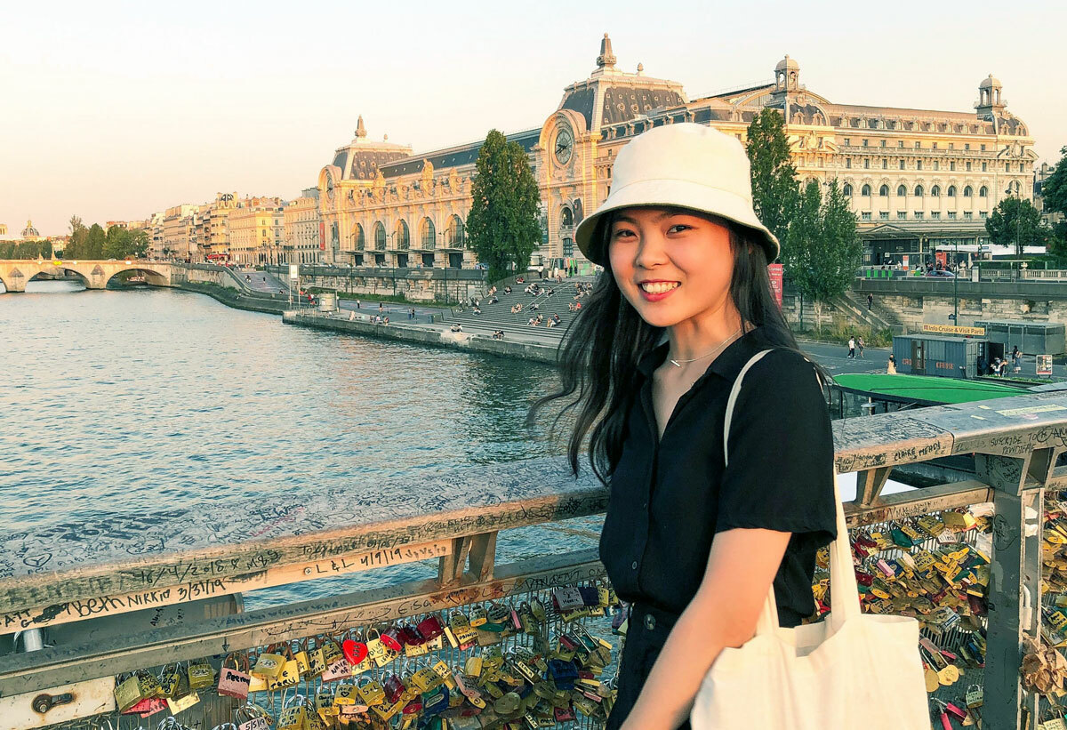 Nguyễn Thị Thanh Hương chụp ảnh tại cầu Léopold-Sédar-Senghor, thủ đô Paris. (Ảnh: NVCC)