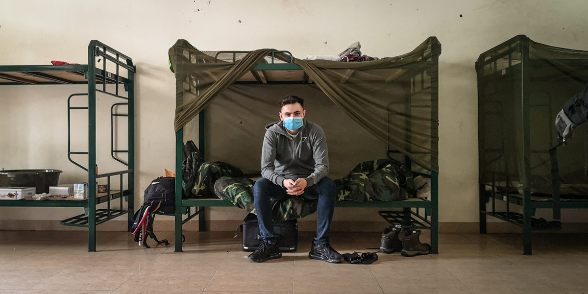 Ở bên ngoài, mọi thứ thật yên bình. Nơi này rất yên tĩnh. Những người lính làm việc không biết mệt mỏi để vệ sinh phòng ốc hàng ngày, ghi lại số đo thân nhiệt của chúng tôi và dọn dẹp. Tôi cảm thấy như đang đi nghỉ cắm trại hơn là đang đi cách ly. Chúng tôi chia sẻ với nhau những gói snack, hoa quả và nhận được đồ tiếp tế từ người thân.
