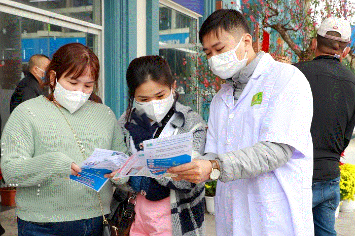 Ngoài phát tờ rơi truyền thông, cán bộ nhân viên Trung tâm Kiểm soát bệnh tật còn truyền thông trực tiếp về nCov đến khách du lịch.