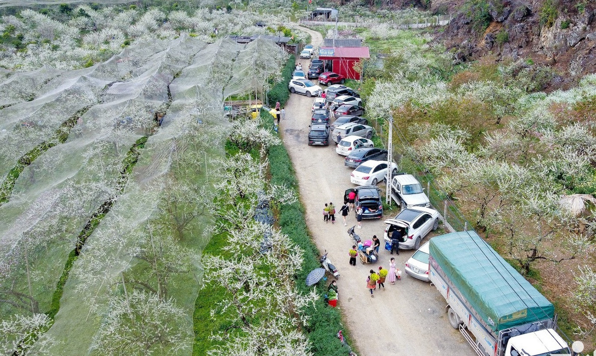 Khách đổ xô ngắm hoa mận Mộc Châu khiến nhiều khách sạn trong tình trạng hết phòng. (Ảnh minh họa)