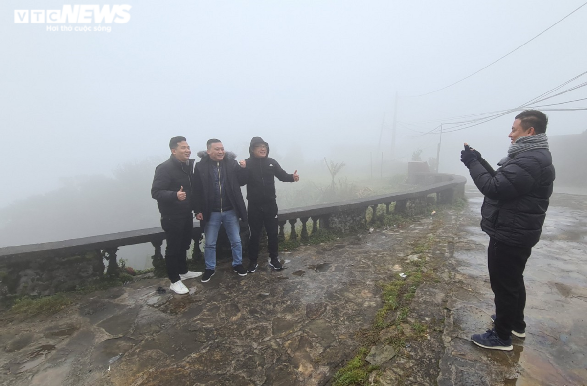 Đoàn khách đến từ Hà Nội cảm nhận cái lạnh 1 độ C và sương mù dày đặc.