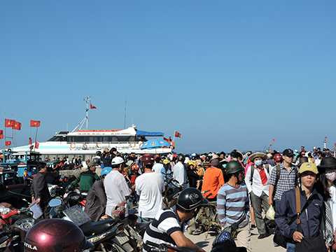| Trong 2 ngày 17 và 18/2 đã có trên 2.000 du khách chen chân mua vé hối hả để rời đảo Lý Sơn vào đất liền |