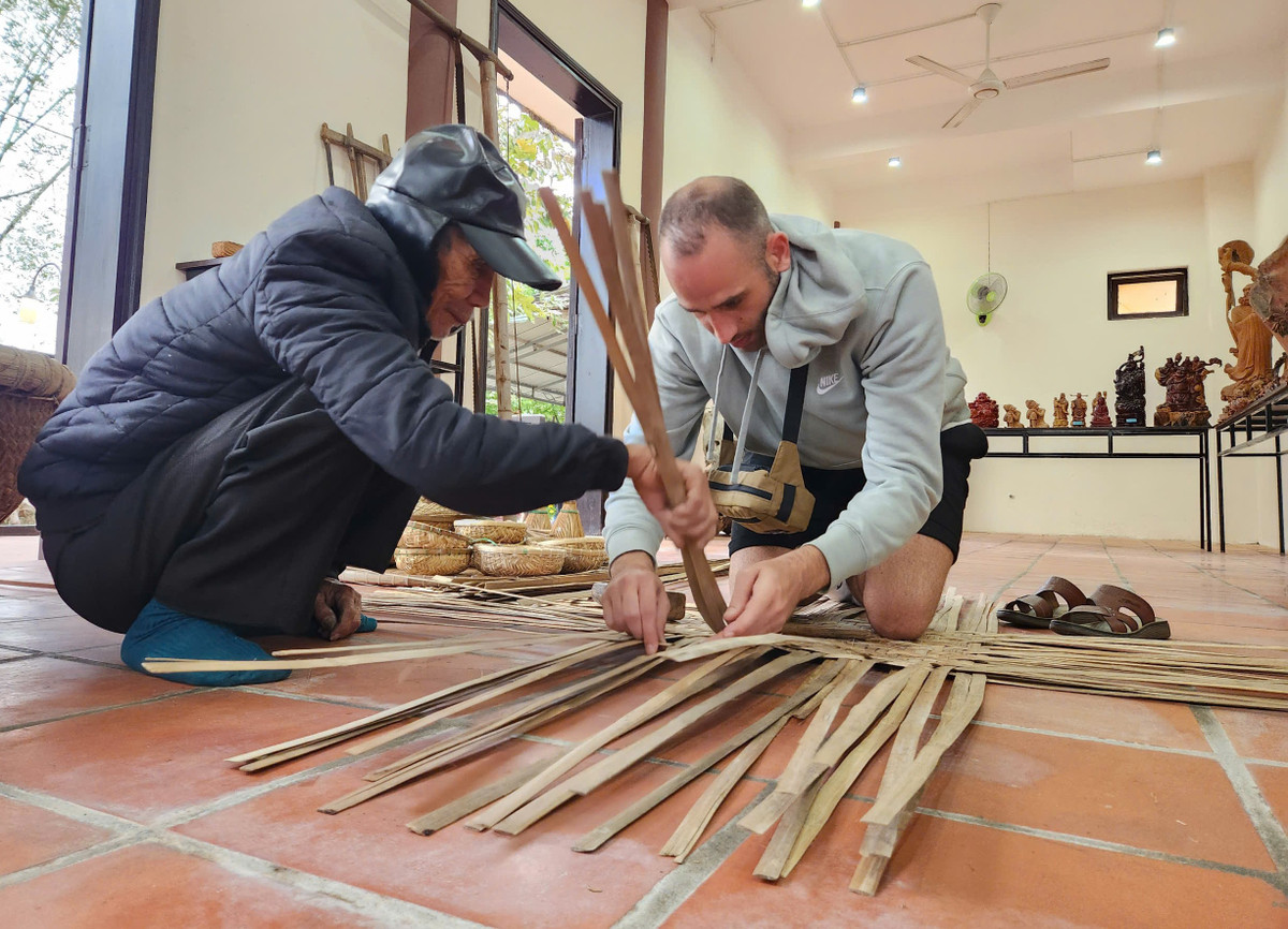 Trong khi đó, ở một góc diễn ra hoạt động đan lát, Robin - du khách đến từ Pháp - chia sẻ: "Chuyến du lịch Hội An lần này của tôi đã có thêm một trải nghiệm vô cùng thú vị. Khi quan sát những thao tác đan lát của cụ ông trong làng thì trông có vẻ khá đơn giản. Tuy nhiên, thực tế trải nghiệm, những du khách như tôi mới hiểu được là để hoàn thiện sản phẩm đòi hỏi nhiều thao tác kỹ thuật, chỉ những người thợ lành nghề mới làm đúng quy trình".