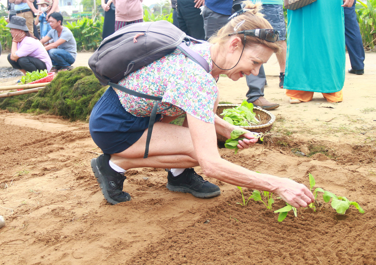"Đây là một trải nghiệm tuyệt vời. Thật khó có thể diễn tả cảm xúc của tôi lúc này khi bản thân vừa có lần đầu tiên làm nông dân ở Việt Nam. Chắn chắn, tôi sẽ kể cho bạn bè của mình về địa điểm tham quan thú vị này" - bà Colette vui vẻ chia sẻ sau khi cùng nông dân địa phương tranh tài trồng rau.